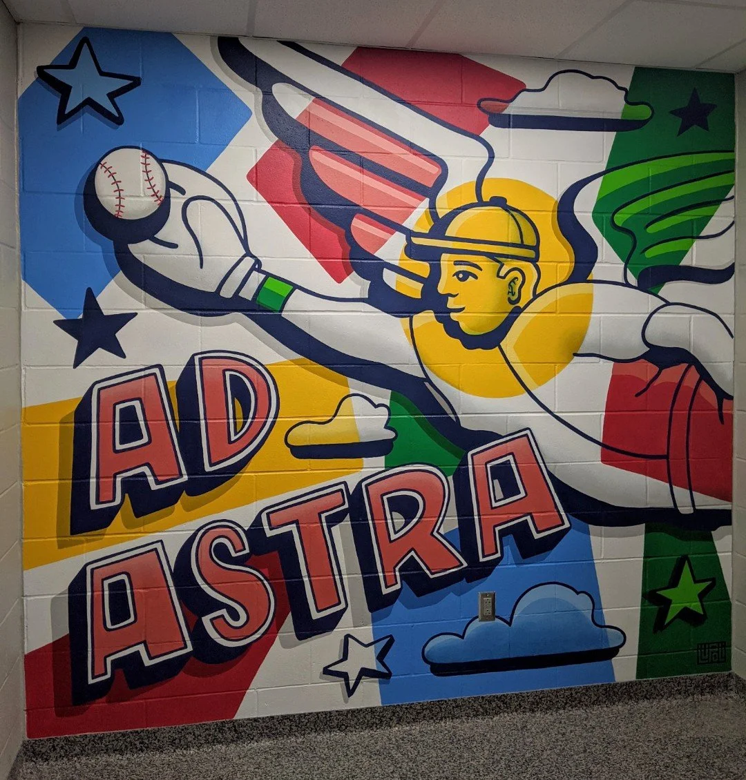 “Ad Astra” Lupoli Collective, 2020, acrylic; Riverfront Baseball Stadium, Wichita, KS.