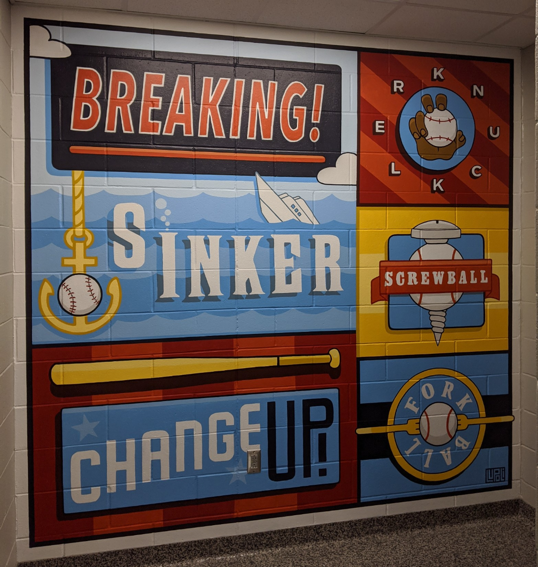 “Pitches II” Lupoli Collective, 2020, acrylic; Riverfront Baseball Stadium, Wichita, KS.